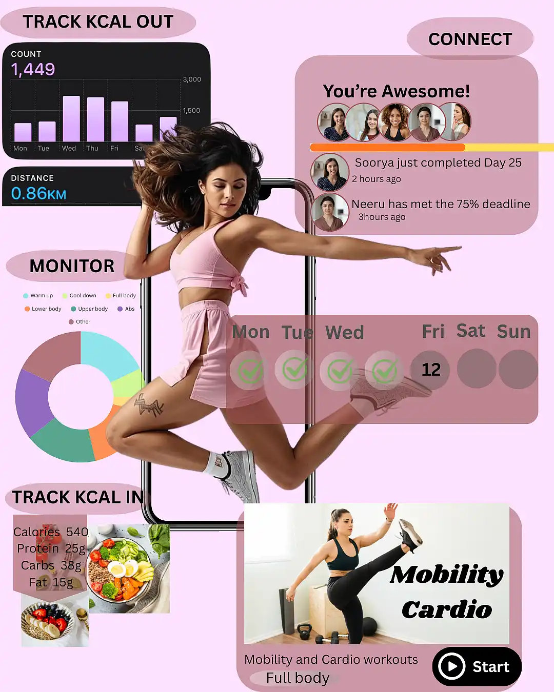 Many women feel tired of the same gym routine. However, our approach offers something fresh and exciting. Byblending strength with mindfulness, we help you reach your goals faster. Therefore, you can finally enjoy the process of getting fit.